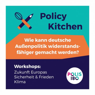 Meldet euch jetzt an, um bei unseren Workshops dabei zu sein und mit uns gemeinsam Handlungsempfehlungen für die Außenpolitik der neue Bundesregierung aufzustellen. Ihr habt noch Fragen zur Policy Kitchen? Meldet euch bei leonie.hopgood@polis180.org oder richard.kaufmann@polis180.org.