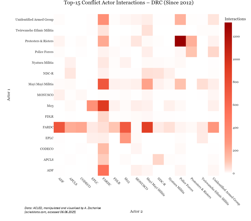 Image 3: Conflict Actor Interactions – DRC (Since 2012); Data source: Armed Conflict Location & Event Data Project (ACLED).