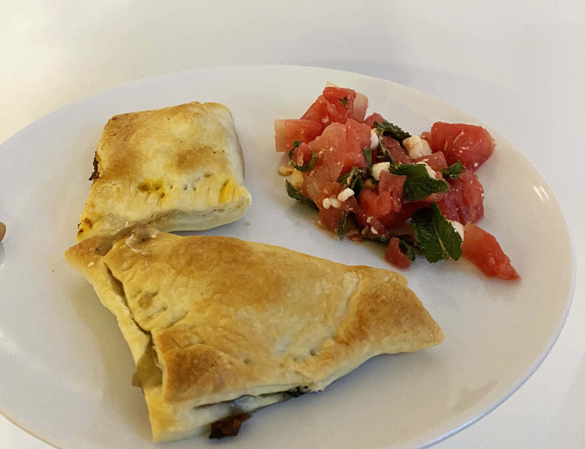 Polis kocht: gemeinsam mit Expert*innen kochen die Gäste der Veranstaltung vegane Teigtaschen und dazu gab es einen frischen Wassermelonen Feta-Salat mit Minze. Foto: Polis180